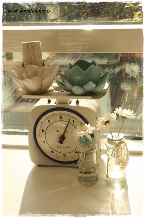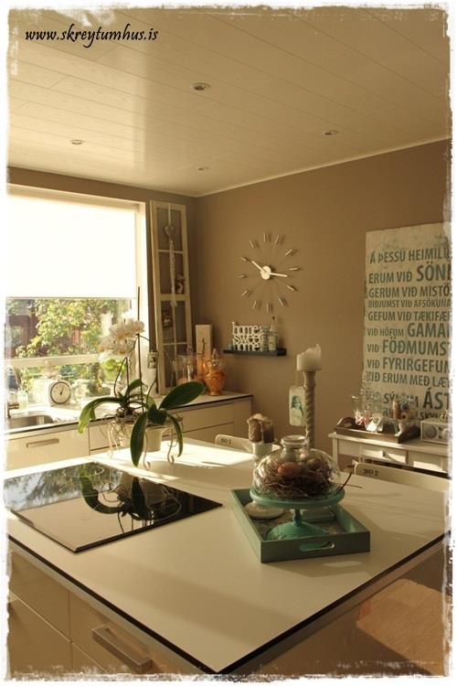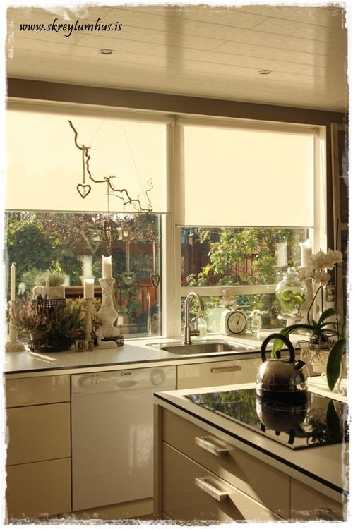 Eldhúsbreytingar, blóm úr Garðheimum, nýjir litlir kertastjakar (sem bættust við hina 5,689,656 sem fyrir voru) og rólegheit.