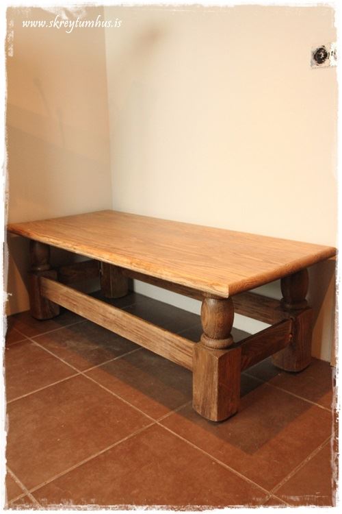 …nú eru kannski einhverjar sem að hafa hug á að vita hvar ég fékk svona eðalbekk, en því er auðsvarað, Í Nytjamarkaðinum keypti ég þetta eðalsófaborð á 3000kr…