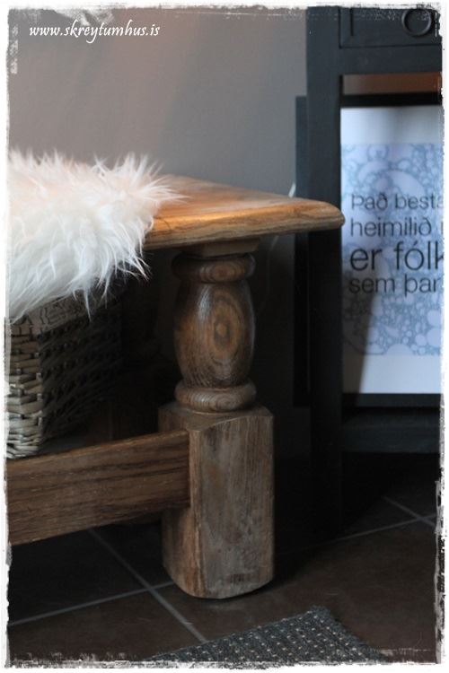 snild með bekkinn hef langað í borð í forstofuna svona hátt eins og elhúsborð í þeirri hæð en mjótt þþað er bara kannski hægt að nota sömu aðferð og saga það til