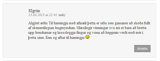 Takk kærlega þið eruð alveg æði <3 <3 Knús í hús