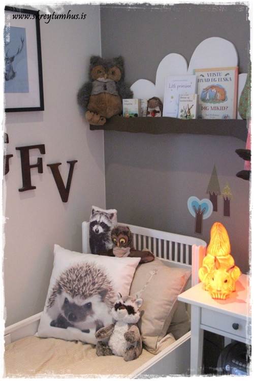 …passar fínt með þvottabjarnapúðanum sem kemur frá Land of Nod, og svo fékk litli maðurinn fyrr í sumar, frá útlönfum, þennanyndislega þvottabjarnabangsa, og ber hann nafnið Kúri Þvottabjörn – og það þarf alltaf að segja fullt nafn, Kúri Þvottabjörn…