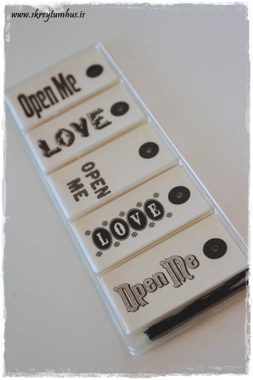 …hér sést aftan á Love-miðana…