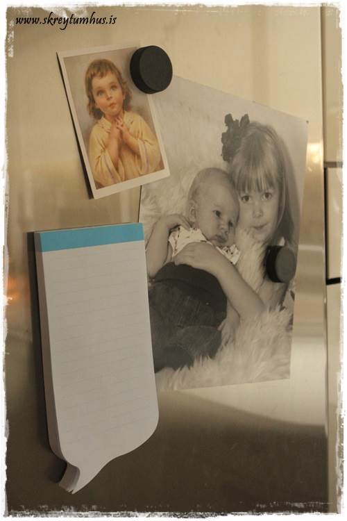 …minnismiðar með segli á bakinu, til að festa á ísskápinn…