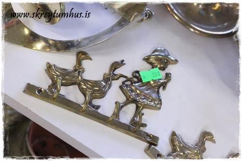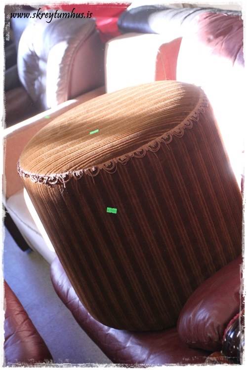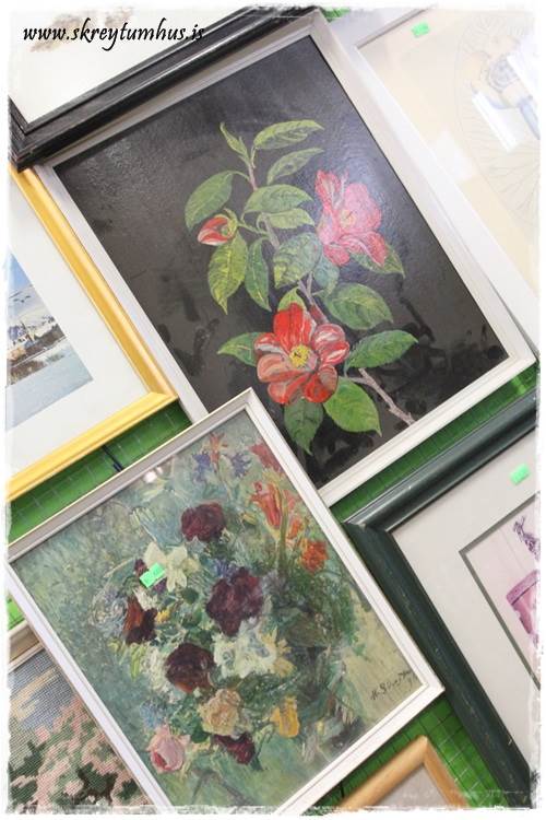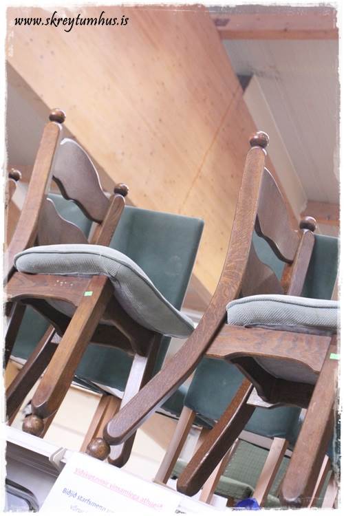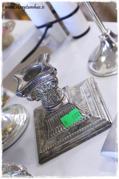 Mér fannst kertastjakinn (þessi þarna fyrir ofan Davíð Odds) flottur, sá hann alveg fyrir mér hvítan…líka stjaki fyrir aftan Davíð á efri myndinni, silfurlitur, svolítið hár og “útvaxinn á ýmsum stöðum”…myndi a.m.k. vilja skoða hann nánar (og ef til vill spreyja líka hvítan). Veggmyndin (líka spreyjuð) og Gullbráarstólarnir eru líka flottir…ætli þeir séu bara tveir af því að sá þriðji brotnaði?? 😉