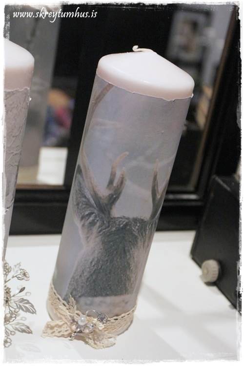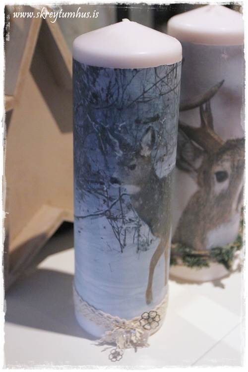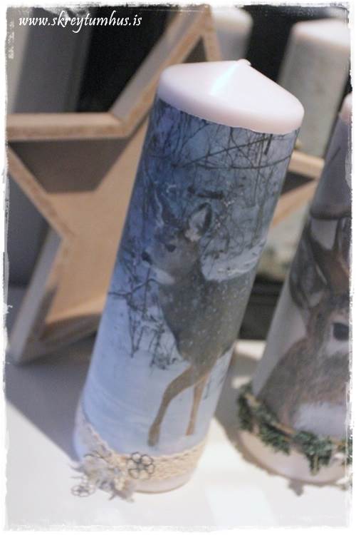 Ofboðslega falleg kerti hjá þér ….verð að fara koma prentara í húsið,ég hef verið að nota servíettur….Ég þarf klárlega að græja svona nokkur kerti núna áður en myrkrið tekur alveg yfir 🙂