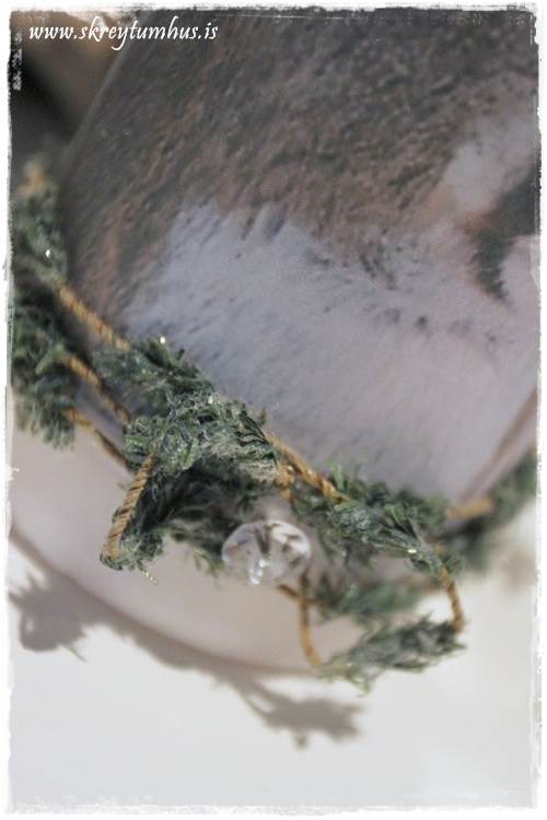 …silfurskraut allan hringinn og smá gervigrenigreinn sem ég bætti við, fest með demantaprjónum…