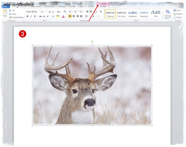 3.  En þá er myndin ekki nógu stór fyrir kertaprentun, þannig að þú smellir á myndina sjálfa og þá sérðu Bleikan flipa efst sem heitir Picture Tools