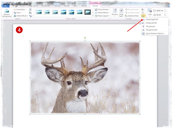 4.  Þessi mynd sýnir hvernig þú snýrð myndinni, en það er líka hægt að smella á litla græna hringinn sem er fastur við myndina, og draga hana til…