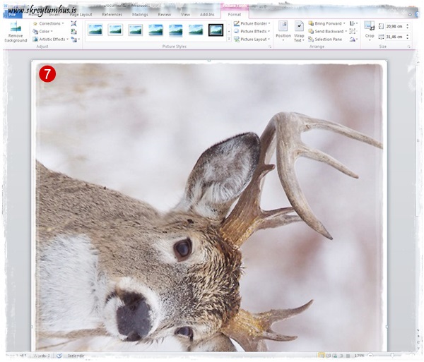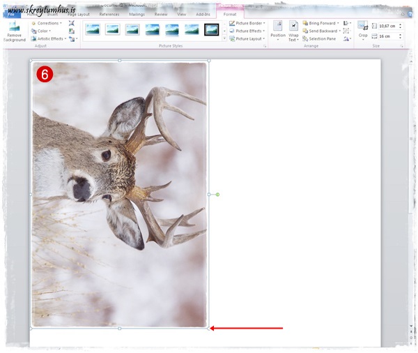 6.  Síðan smelliru á hornið og dregur myndina út þannig að hún fylli upp í blaðið…