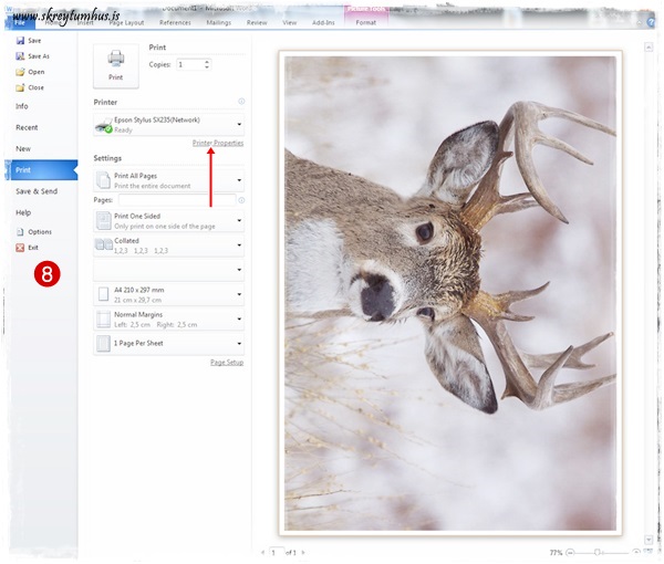 8.  Þá er að fara í File – Print, og velja síðan Printer Properties