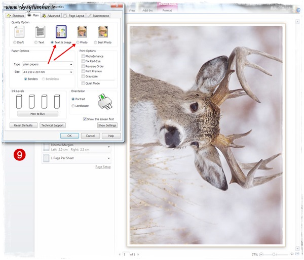9.  Venjulega er valið Text&Image en mér finnst betra að hafa þetta á Photo því þá er betri gæði á myndinni…
