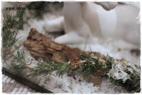 …í þetta sinn notaði ég reyndar grófan gervisnjó í poka, sem að segir manni að allur gervisnjór er góður snjór – þetta er svona eins og ís, hann er alltaf góður…