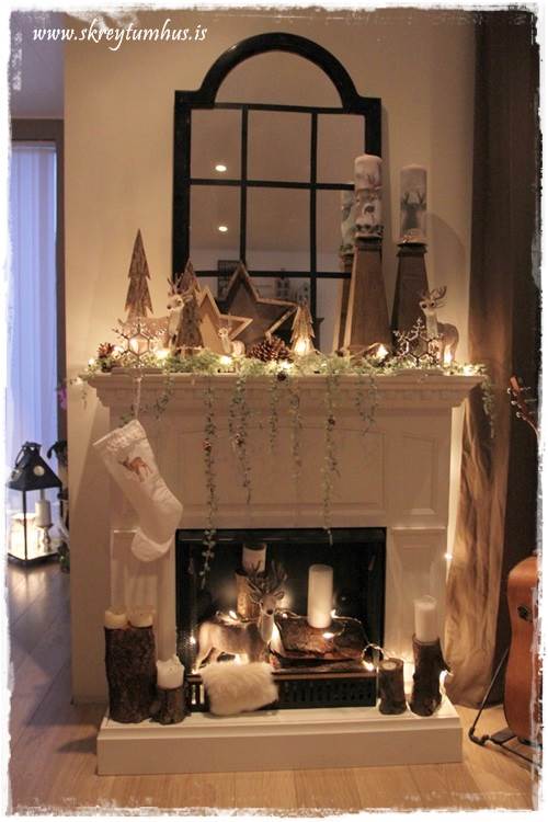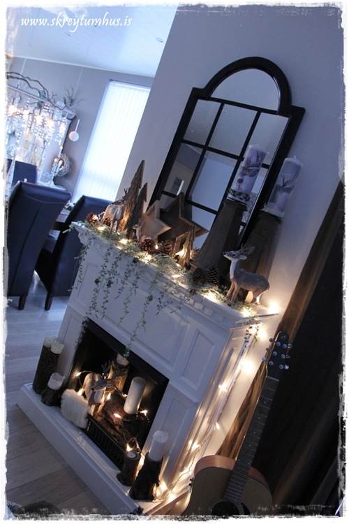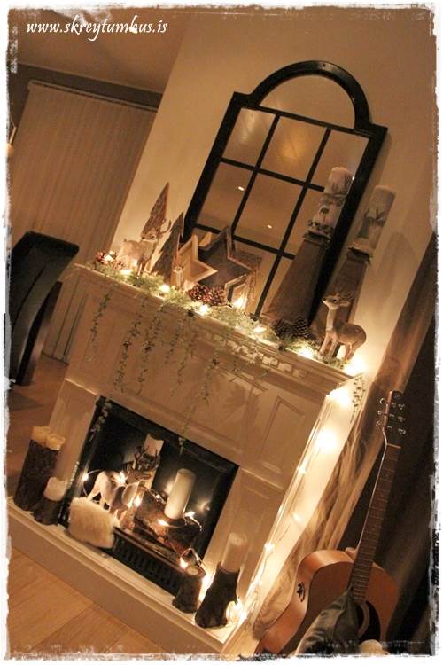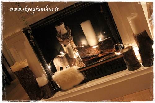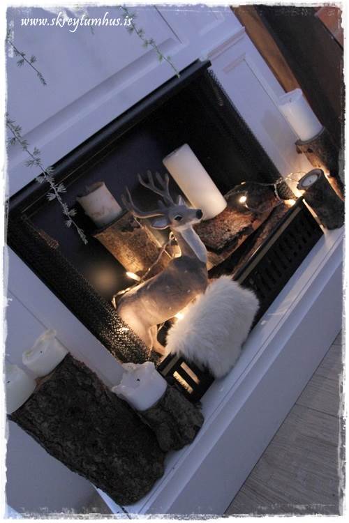 …mér fannst líka skemmtilegt að taka lurkana aðeins út úr arninum, og draga þá út á hilluna fyrir framan…