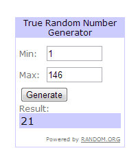 …þá er búið að nýta sér aðstoð Mr.Random.org og hann spýtti úr tölunni: 21