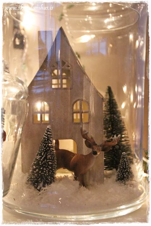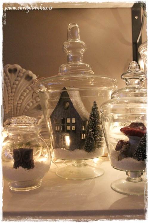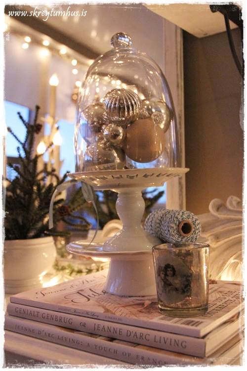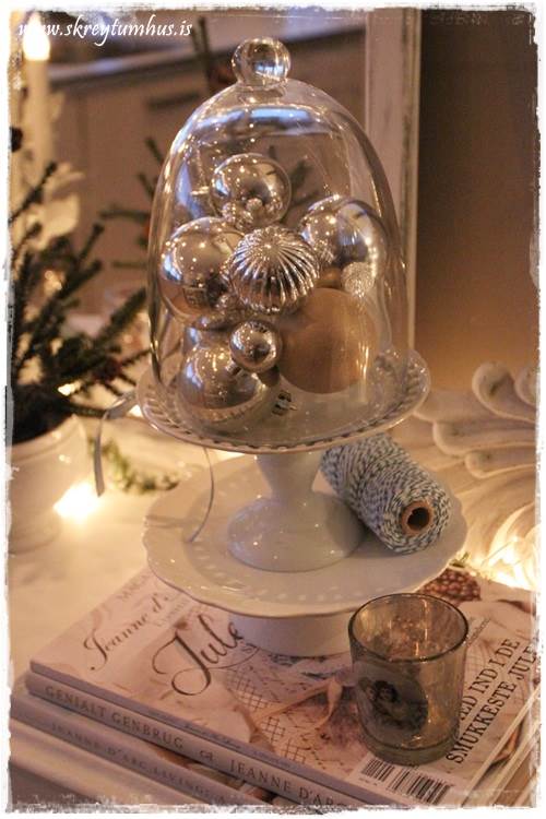 …þetta finnst mér vera dásamlega fallegt! Algerlega “ómerkilegar” jólakúlur – bara einhverjar sem til eru, og svo fallegar þegar þær eru komnar undir glerkúpulinn…