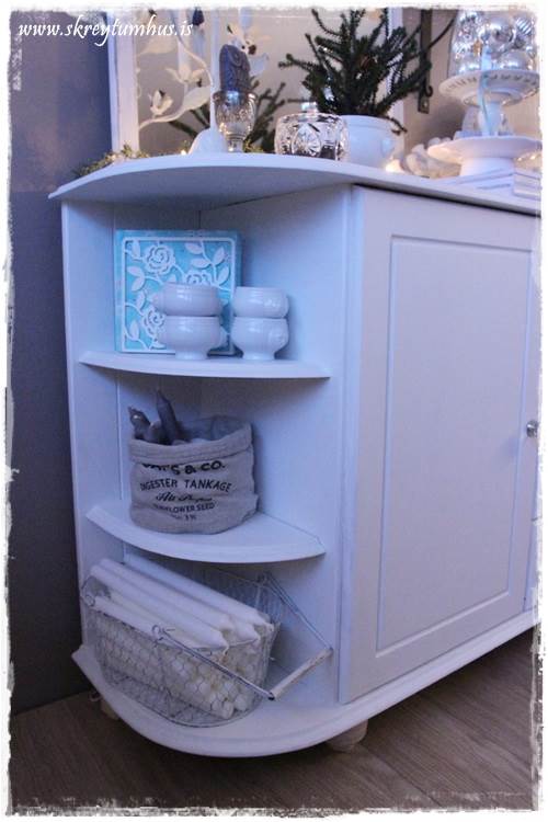 Veistubarahvað!!?!?!?!?! Ég var hjá bróður mínum og mágkonu áðan og sá NÁKVÆMLEGA eins skenk, bara algjörlega ómeðhöndlaðan…benti henni á þessa síðu hjá þér…er samt að hugsa um hvort ég geti rænt honum einhvernveginn án þess að þau taki eftir því 😉