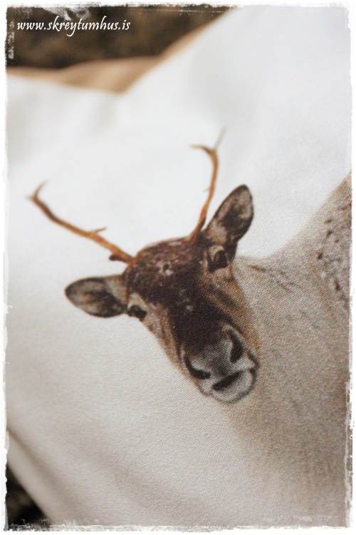 Er “alveg laus” við hreindýrafetish 🙂 keypti mér nú samt bambapúða og kisupúða handa syni minum, í húsgagnahöllinni, hann elskar kisur, við eigum nebbilega eina lifandi sem heitir því góða nafni Gullmoli er alltaf kallaður Moli 🙂