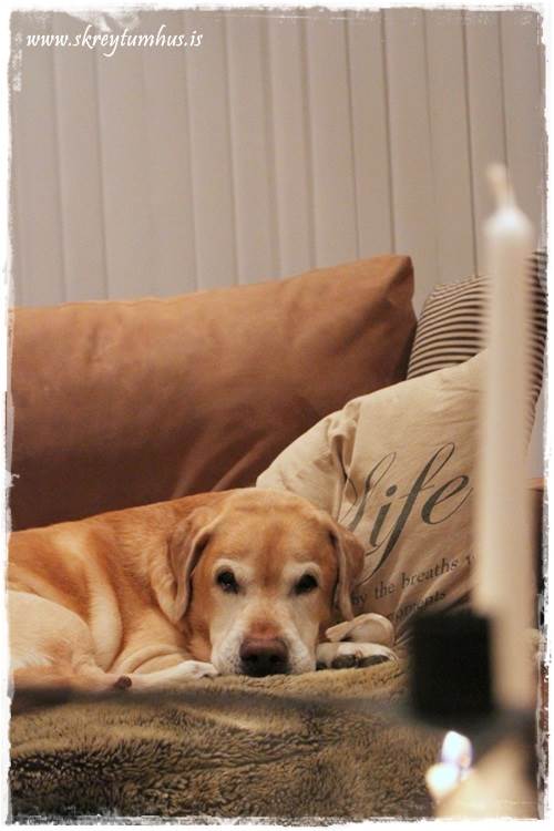 …nú svo þegar ég leit aftur fyrir mig, þá lá þessi gamli vinur í sófanum “sínum” – hann er alveg búin að taka hann yfir…