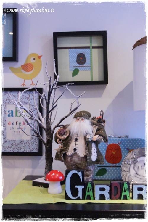 …hinum meginn í herberginu stendur kommóða litla gaurs og á henni er gamall jólakall,