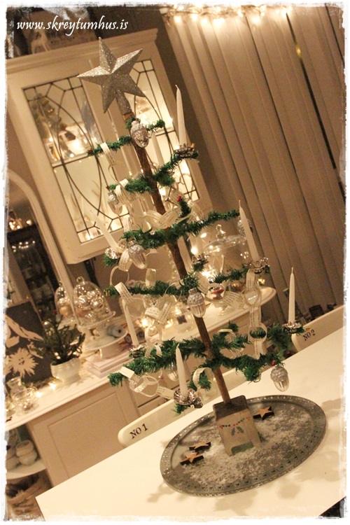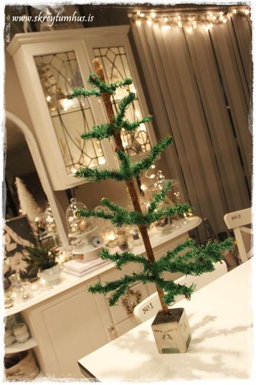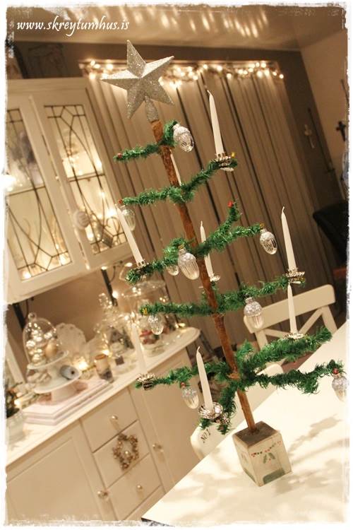Þetta er afskaplega fallegt 🙂 Mig langar einmitt í svona gamaldags tré með kertaklemmum og fíneríi 🙂