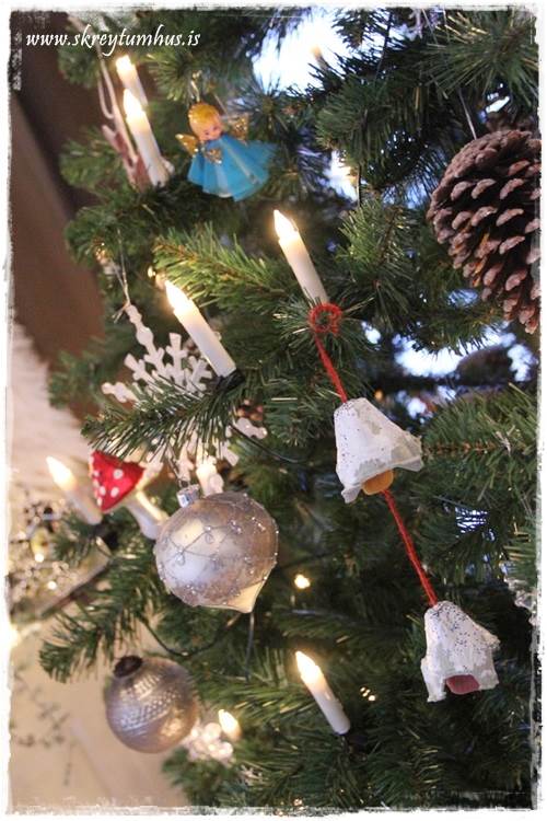 Síðan, svo ég hljómi eins og allar mæður, þá er það auðvitað dýrmætast skrautið sem krakkarnir koma með heim og útbúa sjálf. Eins og t.d. englakórinn og jólatrén, sem er gert af þeim báðum í sama leikskólanum á mismunandi árum. Ég er leikskólanum svo þakklát fyrir að leyfa krílunum að gera svona skemmtilegt og fallegt skraut og gaman að geta safnað þessu svona saman á milli ára – yndislegt!