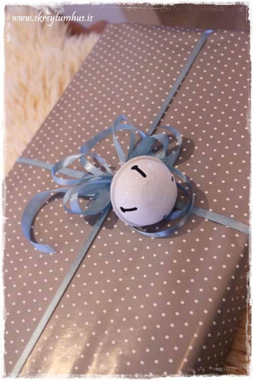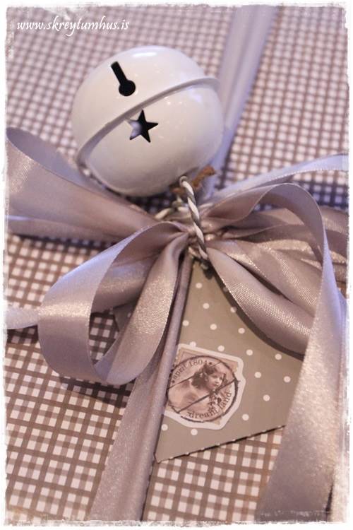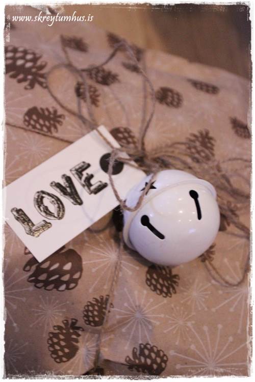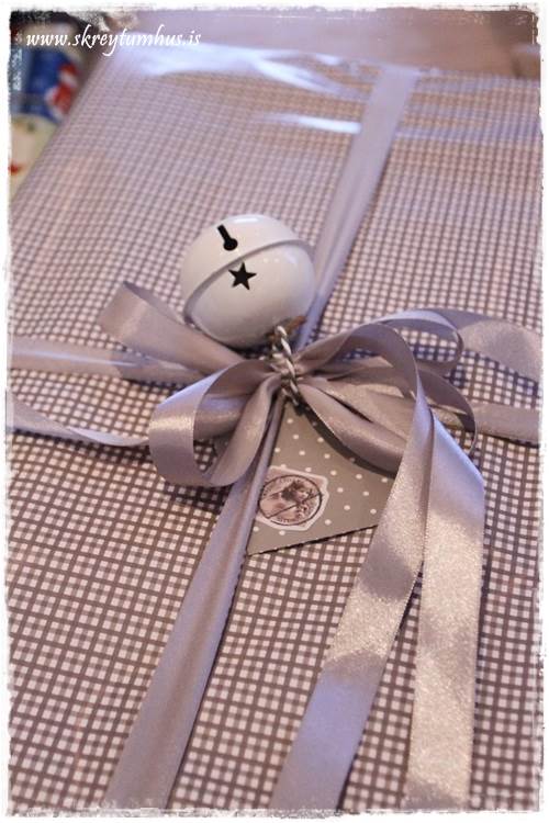 Glæsilegir pakkar frá þér eins og undanfarin jól 🙂 Ég reyndi aðeins að breyta út af því venjulega… notaði ekki krullubönd heldur venjulega borða (úr söstrene) og svo sá ég hrikalega krúttlegar bjöllur í Tiger, 20 saman á 600 kall þannig að ég batt þær á pakkana, kom skemmtilega út 🙂 Er hér með alveg hætt að nota krullubönd… 🙂