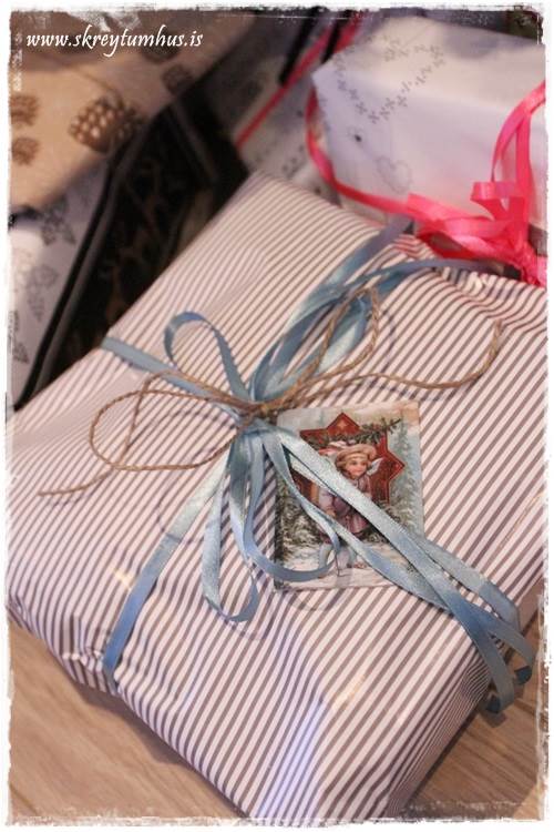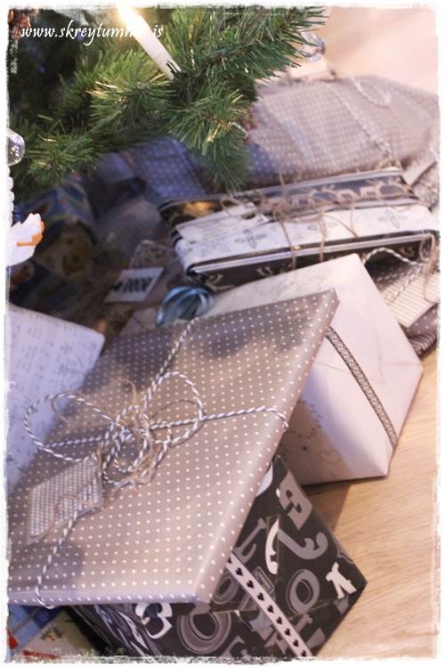 …en meira um það síðar. Í ár þó tók ég bara einfaldleikann á þetta. Pappír, borði og einstaka skraut með…