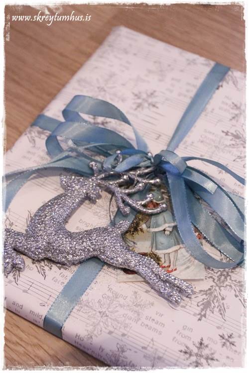 Fékk einn pakka frá tengdamömmu þar sem hún notaði einmitt þessi hreindýr en þau voru rauð, hún límdi þau standandi og festi tvo gamaldags sleða á þau….það var fallegur pakki sem mikið var lagt í.