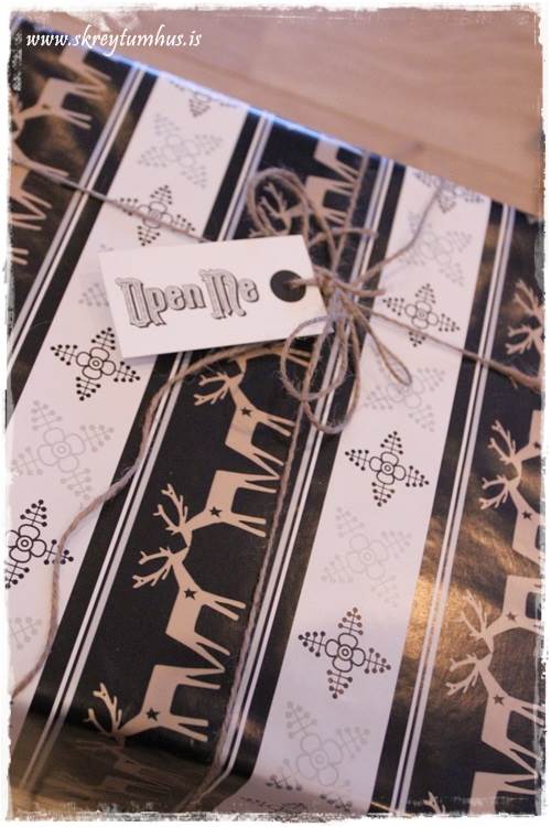 skemmtilegir pakkar 😀 krakkarnir og bóndinn fengu einmitt svona hreindýr á sína pakka í ár svo notaði ég stimpla til að skrifa nöfnin á pakkan 🙂