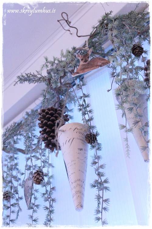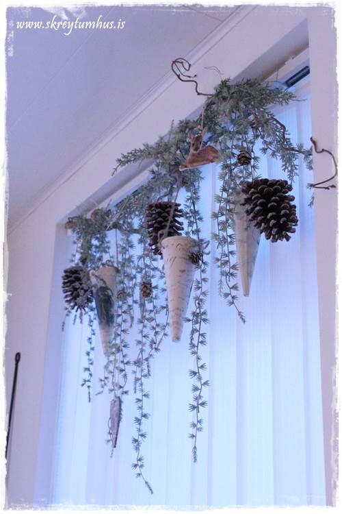 …í þetta hengdi ég síðan stóra grófa köngla og kramarhús…