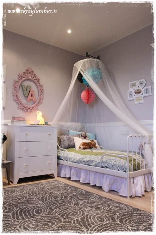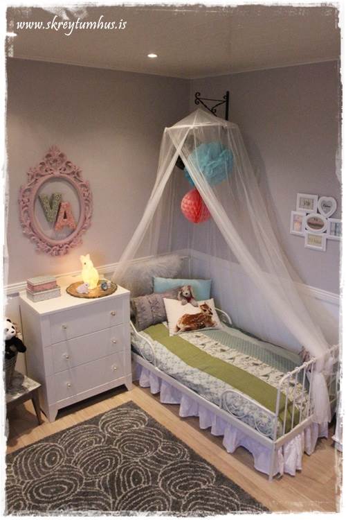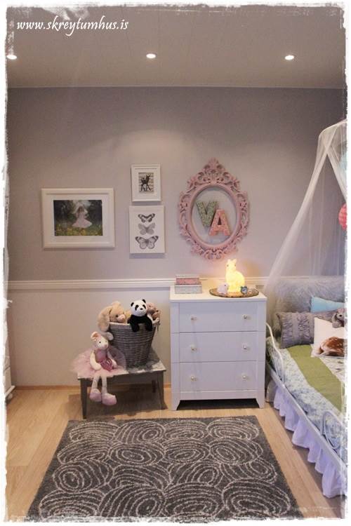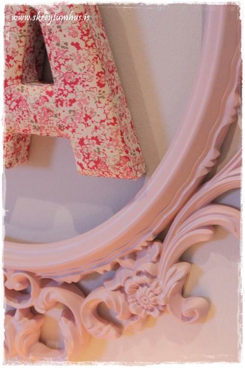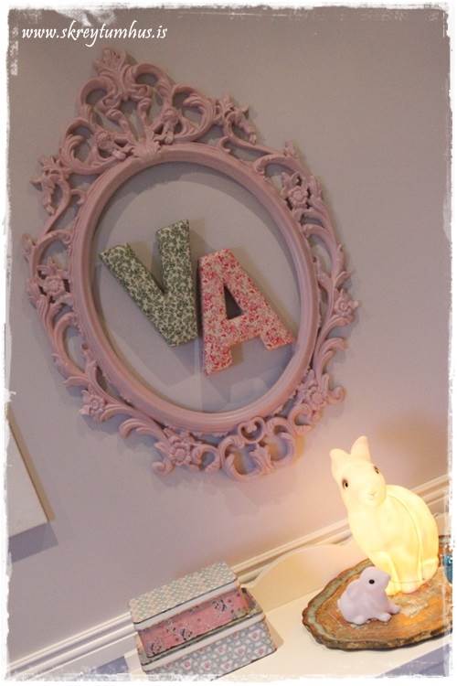 Þetta herbergi er svooo fallegt ! 🙂 .. en mig langar til að fá að vita hvernig þú gerðir stafina sem eru inní Ikea rammanum ? finnst það æði flott ! 🙂