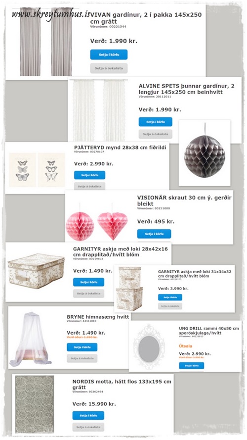…og þegar að heim er komið þá er bara að skoða og raða og njóta og horfa.  Allt sem er feitletrað er með hlekk á bakvið sig þannig að bara smella og þá sjáið þið hlutinn…