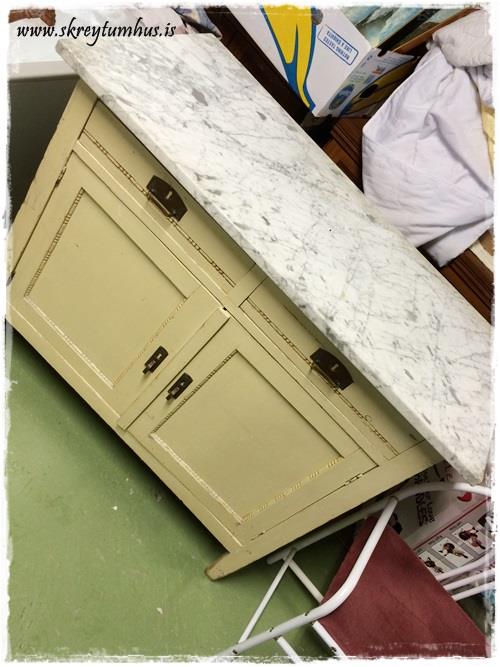 …með marmaraborðplötu…