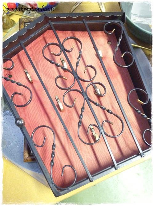 …lítill lyklaskápur sem gæti orðið flottur spreyjaður og með fallegur gjafapappír í bakinu…