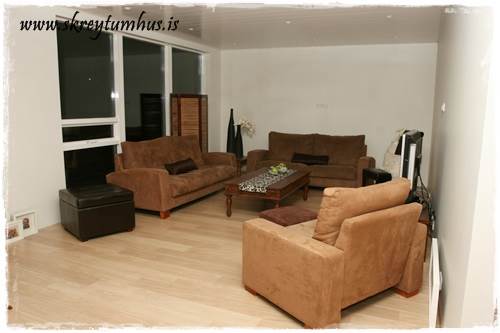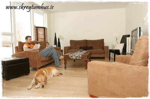…að lokum leit stofan svona út fyrsta morguninn okkar í húsinu. Þetta er tekið daginn eftir að við fluttum inn og eins og sést á fóru hlutirnir strax á “sinn stað”…