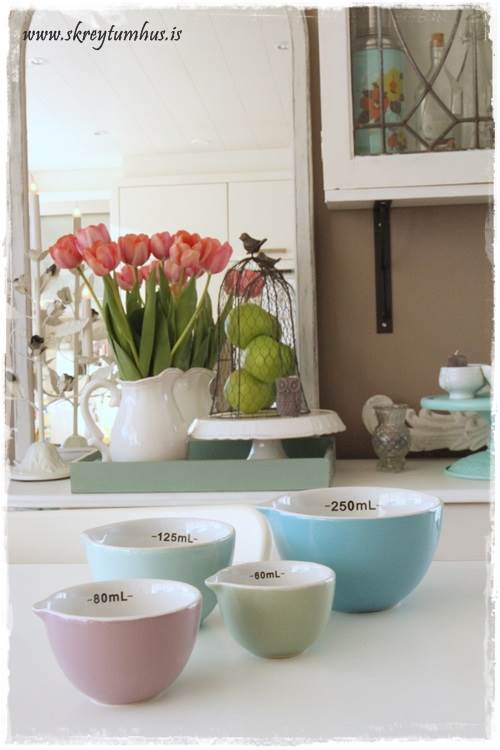 …í Söstrene Grenes í Smáralind fékk ég mér síðan þessar dásemdarskálar, þurfti þær ekki nauðsynlega fyrir þennan bakstur – nema þá helst svona andlega og stundum er það bara mikilvægara! Þær eru alveg dásamlega fallegar, þó ég segi sjálf frá…