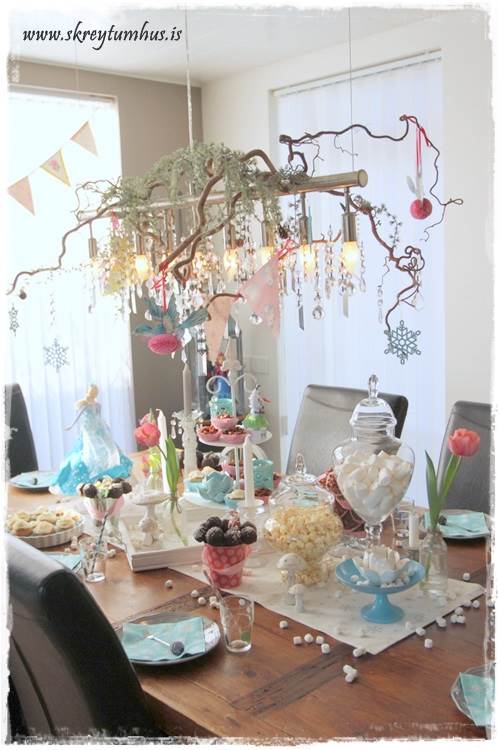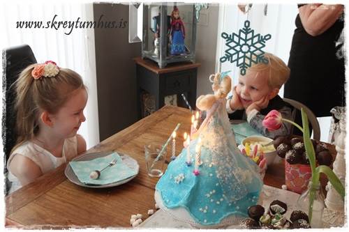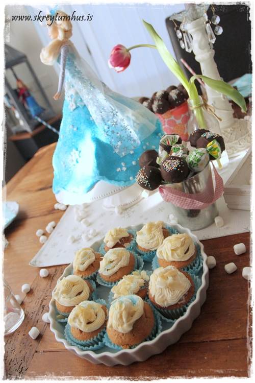 ...við vorum með bláa “frost”mjólk, lituð með matarlit. Það er svo fyndið að lituð mjólk er alltaf vinsælust í krakkaafmælunum, frekar en gos eða djús…