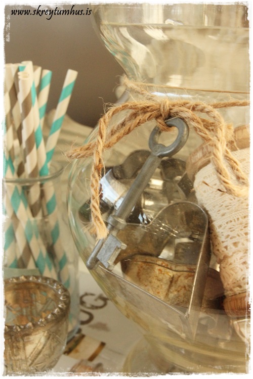 …og í snæri utan á krukkuna setti ég líka gamlan lykil…