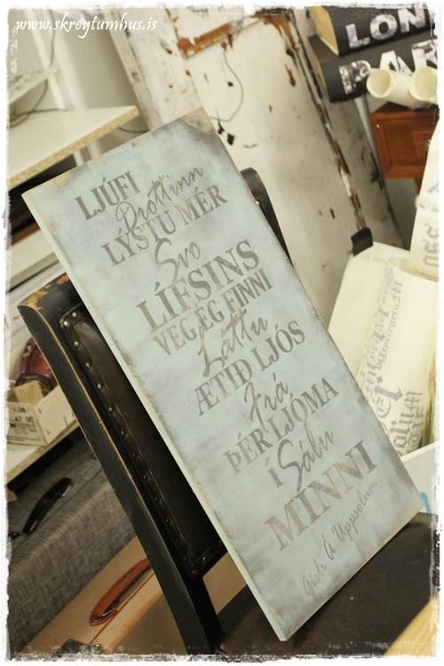 Haldið ekki bara að skvísan hafi ákveðið að halda námskeið þar sem að hún kennir skiltatöfrana sína og þar sem að ég þjáist af skiltablæti á háu stigi, þá stökk ég af stað.  Myndavélin var með í för og ég smellti af nokkrum myndum…