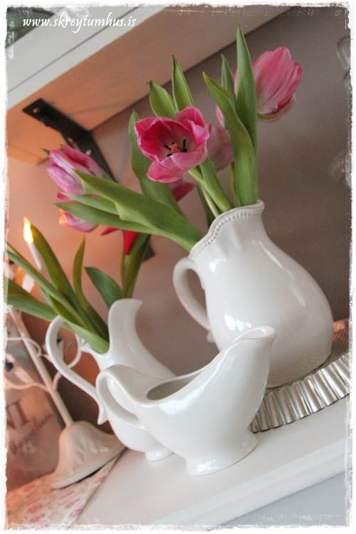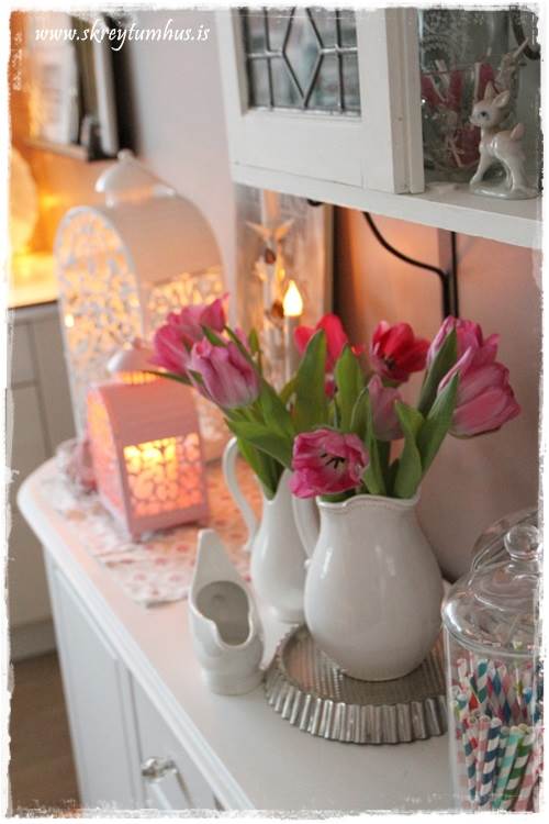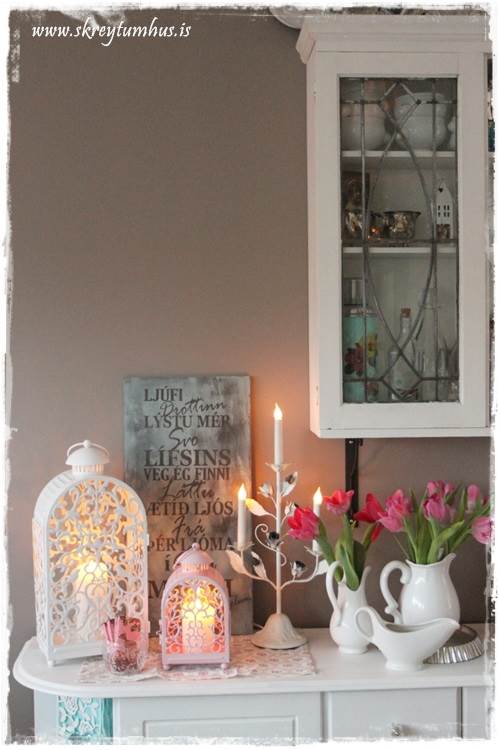…en bara með þessum tveimur luktum finnst mér eins og það sé komið bara vor á skenkinn minn…