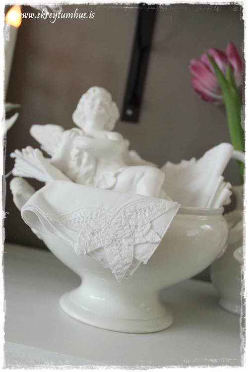…og gömlu servétturnar og engillinn einmanna eiga bara vel saman í henni, svona til að byrja með…