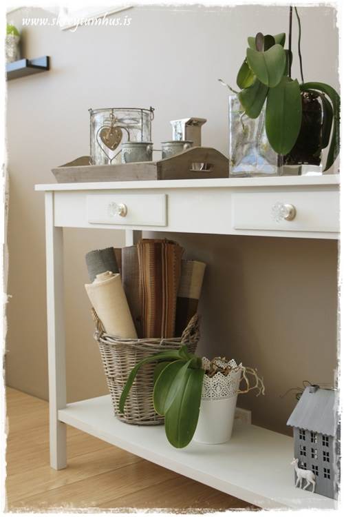 Trjáhillan er heimalöguð, allt um það hérna: http://www.skreytumhus.is/?p=2531
