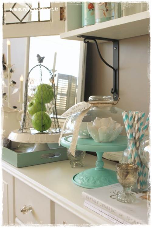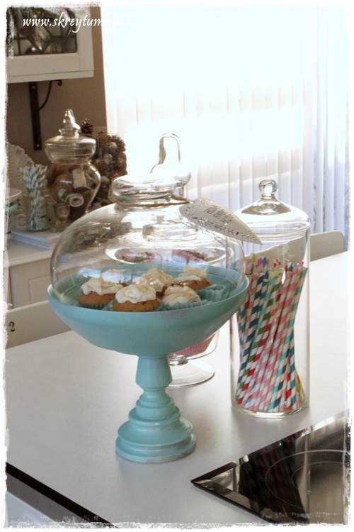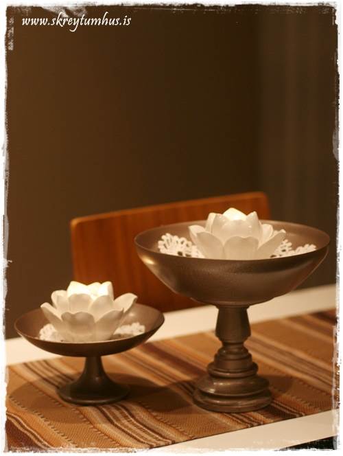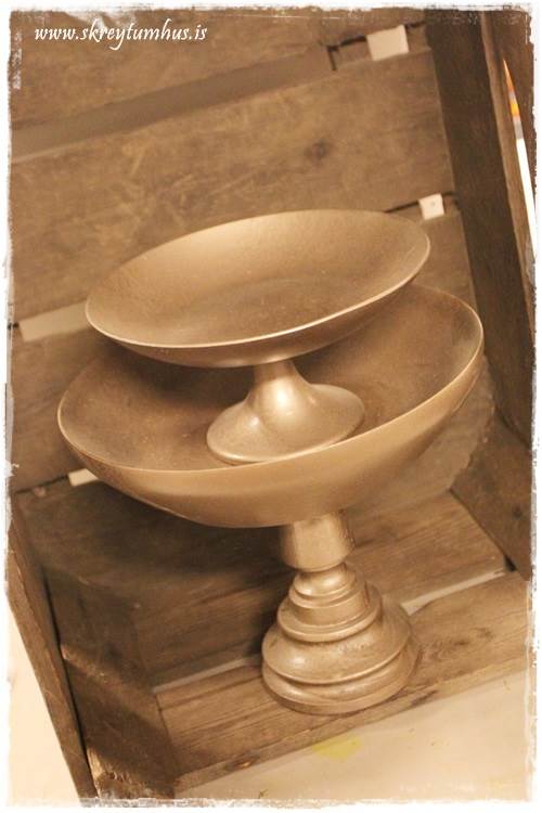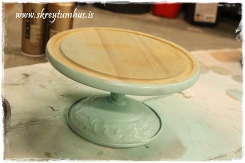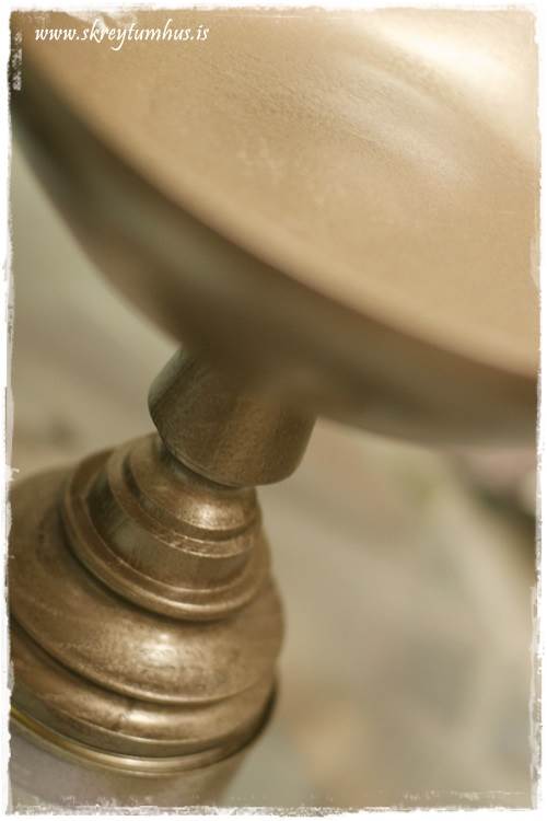 …en þar sem mér vantaði skál á fæti, og mig langaði í litinn á borðið. Smá spreyji seinna vorum við komum með skálina sem sást á fyrstu myndinni…