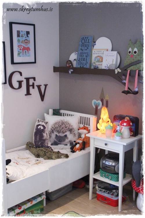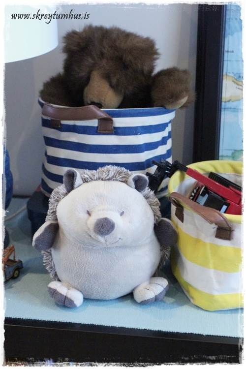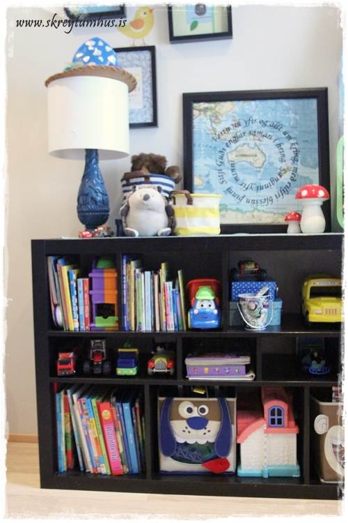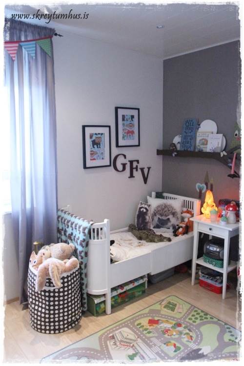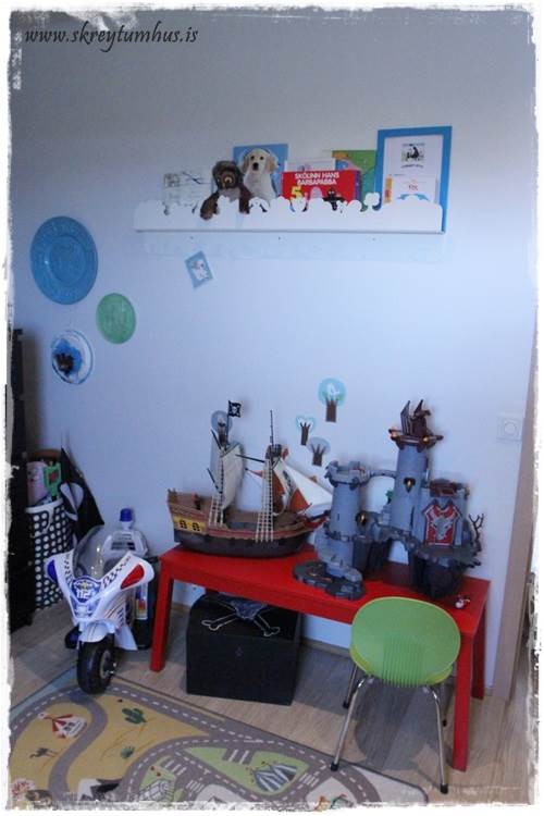 Krúttlegt herbergið hans 🙂 Væri svo til í að mínir drengir væru duglegri við að ganga frá eftir sig en þeir eru algjörir legosjúklingar og eru alltaf “alveg að fara að nota” það sem er út um allt 😉 Næst á dagskrá er að kaupa skrúfuskáp undir allt legoið 😉