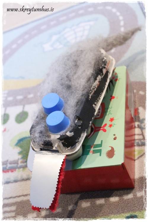 …og hjólakassa fyrir púslin. Honum finnst æði að koma heim úr leikskólanum, planta sér á teppið og púsla, og púsla og púsla…