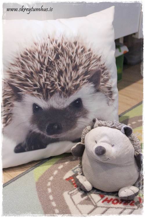 …en sá ltili féll alveg fyrir honum, og finnst svo fyndið að eiga bangsa með svona þungann rass. Svo er hann alveg í stíl við púðann sæta úr Söstrene…
