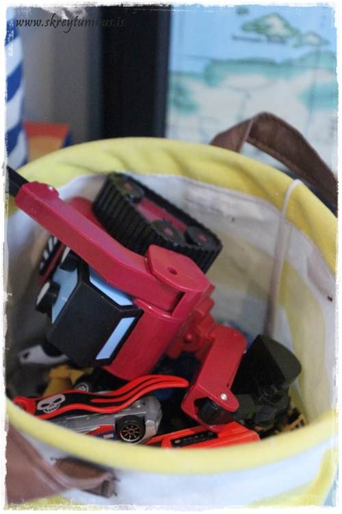 …karfan góða úr Söstrene geymir alls konar litla bíla…