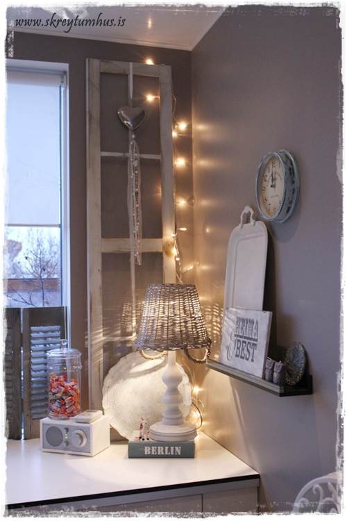 En annars ætlaði ég bara að hæla þér fyrir vel skreytta klukku og því miður er hún ekki til í Rúmfó Akureyri 🙁 svo ég bíð og vona að ég finni ódýra klukku seinna til að hafa í einu herbergi hérna. … og eggin finnst mér flott svona “sjhabbý” ljósgul 😉