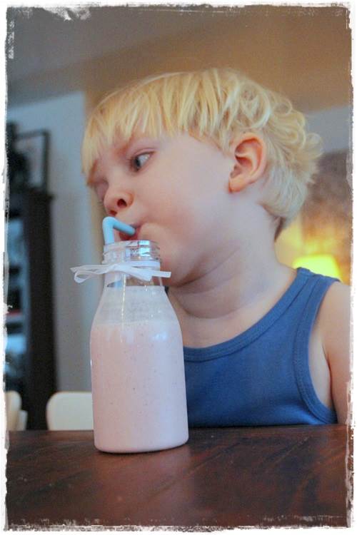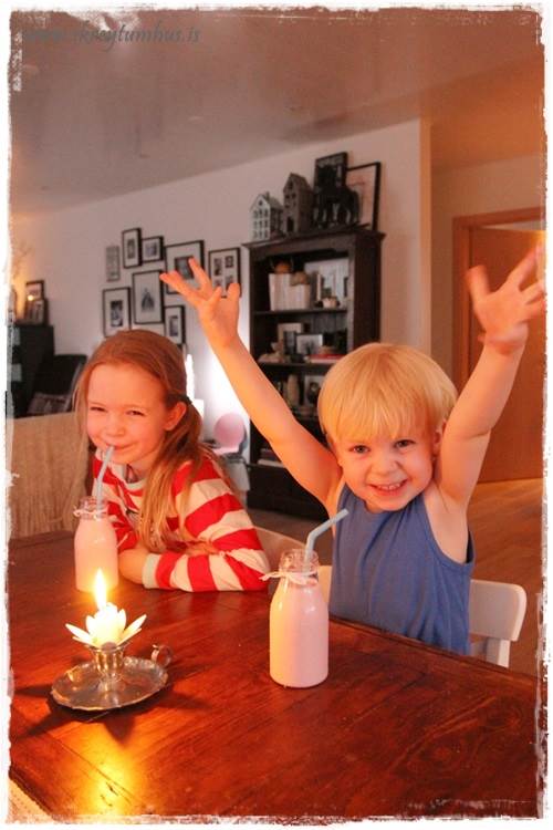 …við ákváðum bara að halda upp á mánudaginn, með því að fá okkur smá svona jarðaberjarjómasjeik, sérlega upplífgandi í byrjun viku…