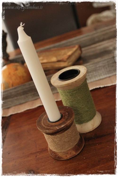 …hér er uglan farin og við bættust tveir keflakertastjakar.  Ég var alveg ótrúlega hrifin af þeim, skemmtileg áferð, áhugaverðir að sjá, og snilld að hægt er að snúa þeim á báða vegu og nota fyrir venjuleg- og sprittkerti…